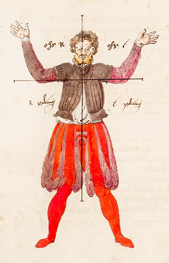 Of the four openings and divisions of the man how one should use (them) in the Sword First, the man is divided into two parts namely left and right as shown by the (vertical) line in the above figure from above to below but then into two parts namely in the lower and upper, which the two upper parts are divided in the Ox the other two to the plow. Note: Found in Lund 7.1r, 8.r also mentions “the figure above” yet that figure does not appear in the Lund! |